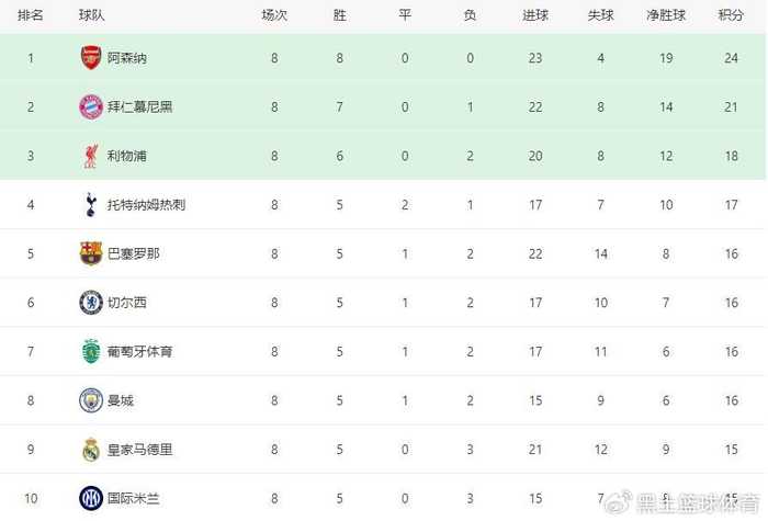 本赛季的欧冠联赛第一阶段前七轮战罢,全胜的阿森纳和6胜1负的拜仁慕尼黑,已经提前锁定了两个欧冠十六强的名额,哪些球队能够斩获前八中的另外六个席位,避免附加赛的鏖战,也就成为了最大的看点,这一个比赛日,欧冠第一阶段收官战全面打响,十八场比赛同时开战,在经历90分钟的鏖战之后,最终前八名尘埃落定。